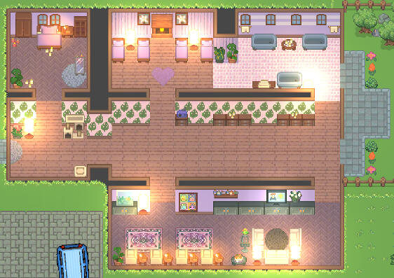 spa time is an app for relaxation that uses asmr and multisensory interactions to provide stress relief. the app is themed around the idea of a spa and catered towards people who enjoy audio and visual stimulation or find that it helps them to wind down. spa time is designed to be used during breaks in work or study as well as in general to help the user feel more calm.my role in this project was the creative director. to embody the soul of the project i scheduled meetings and set timetables for the team as well as creating a mood board to store our notes and ideas as well as help visualise the feeling of the experience of the app. i also sourced the sprites and pixel tiles for the game and directed the interior and exterior design of the spaces which you can see in the floor plan below.