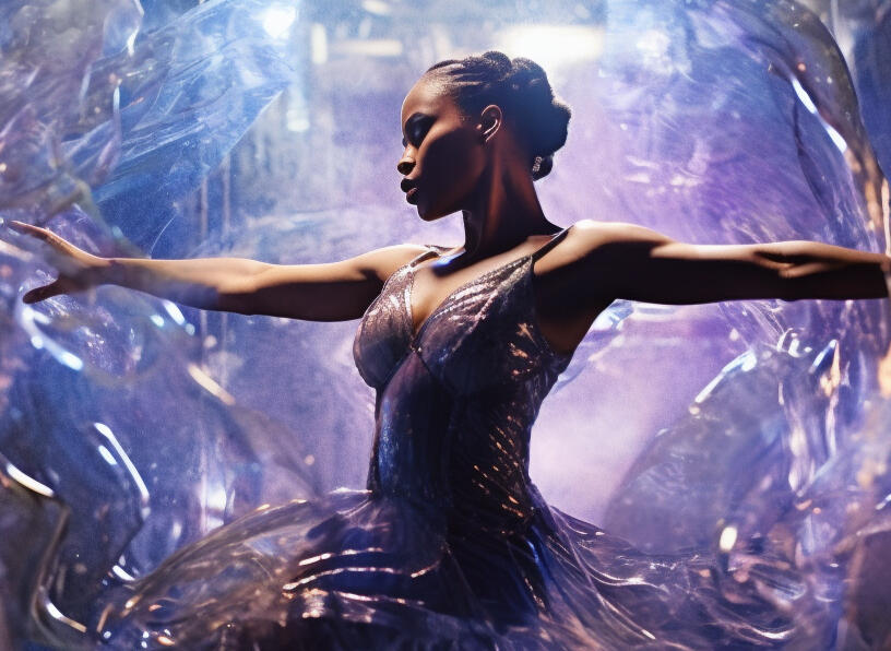 inspired by my late aunt, rosita balthazar who ran the belizean dance company, this series explores the concept of ai choreography and ballet costume. my work often deals with the relation between human and computer interaction and the beauty that lies within creative collaboration with technology. the lighting treatment in this series is meant to evoke the neon lights of subways, car indicator lights, and cats eyes on the road. these types of lights are usually liminal and unnoticeable in the background as they purely serve a purpose to help us see in the dark.the materials are inspired by the bio materials that designers are using now, which often carry the aesthetic values of plastics but bring us back to nature and resemble jellyfish or undersea creatures. by incorporating these materials, the series reflects the interplay between artificial and organic, highlighting the beauty and fragility of the natural world. the concept explores the transformative power of technology in the realm of dance and costume design, blurring the boundaries between the human body and the digital realm.