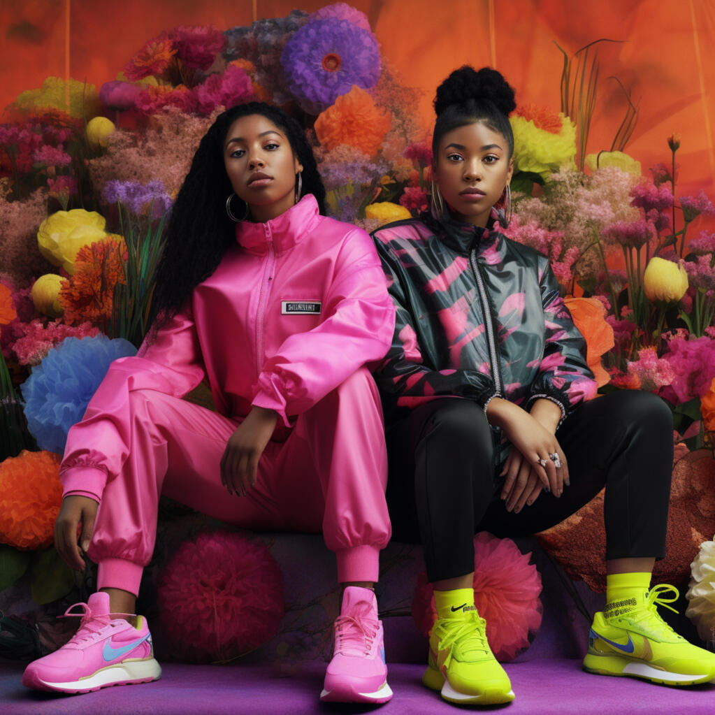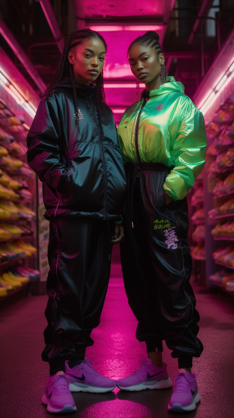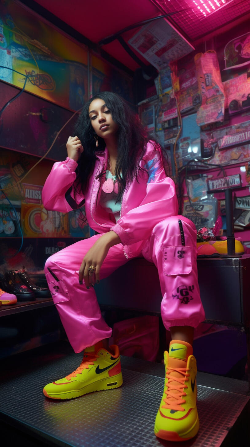 the nike x cyberpop series is a concept of how i would design and style a nike streetwear collection. the images are inspired by japanese pop culture and nineties british rave fashion with neon pastels and patterned fabrics reminiscent of the era. the pieces are designed to be comfortable and breathable. the accessories and makeup are natural and inspired by natures summer flowers.the collection features a range of sneakers, sportswear, and printsthat capture the energy and aesthetic of cyberpop culture. the use of bold colors and playful patterns creates a dynamic and eye-catching visual experience. the focus on comfort and breathability ensures that the collection is not only stylish but also practical for everyday wear.complementing the apparel are natural and fresh makeup looks, drawing inspiration from the vibrant hues of summer flowers. the emphasis is on enhancing natural beauty and embracing a fresh-faced glow. the overall aesthetic of the nike x cyberpop series embodies a fusion of streetwear fashion, cultural influences, and a touch of nature's beauty, creating a unique and captivating collection that resonates with the vibrant and expressive individuals of today.