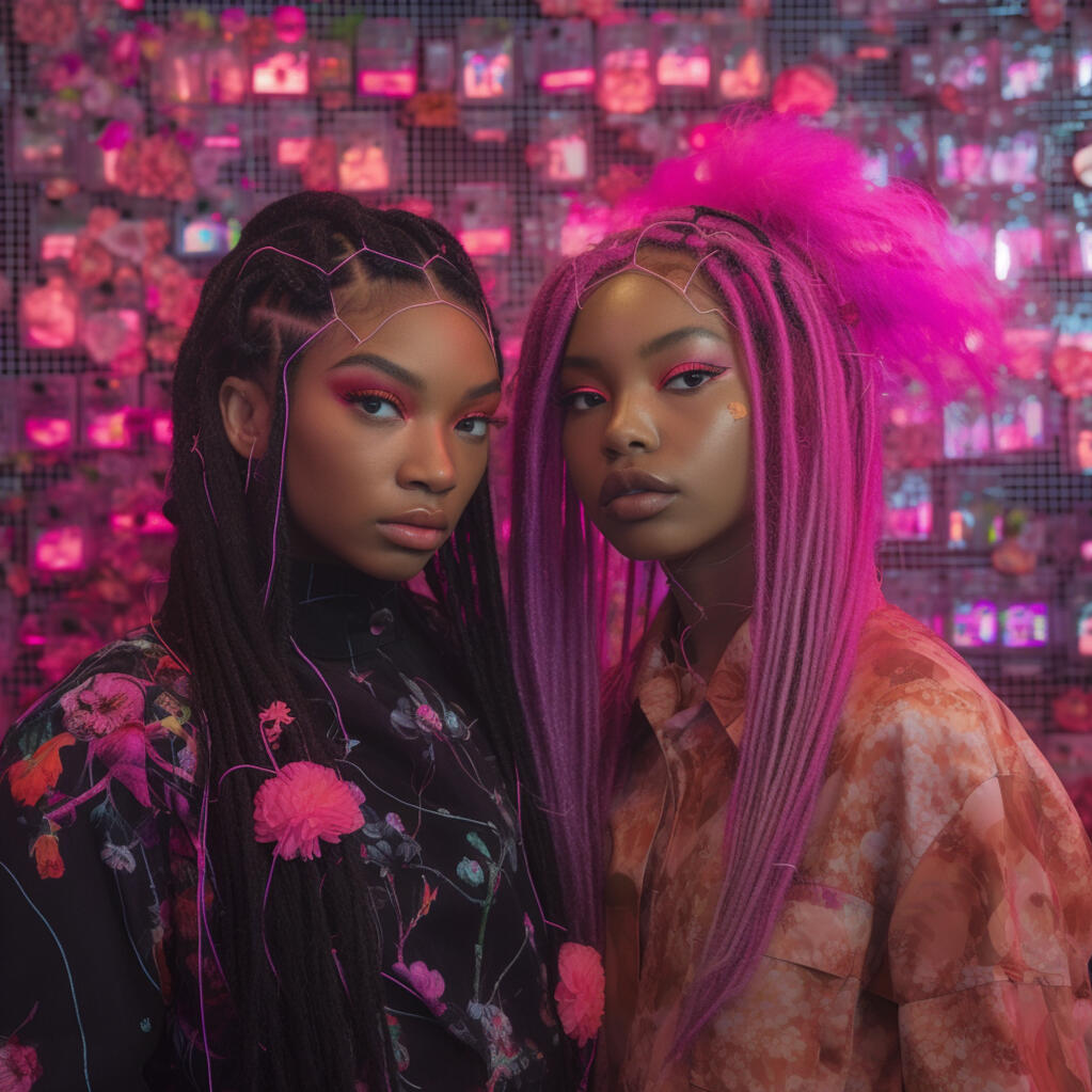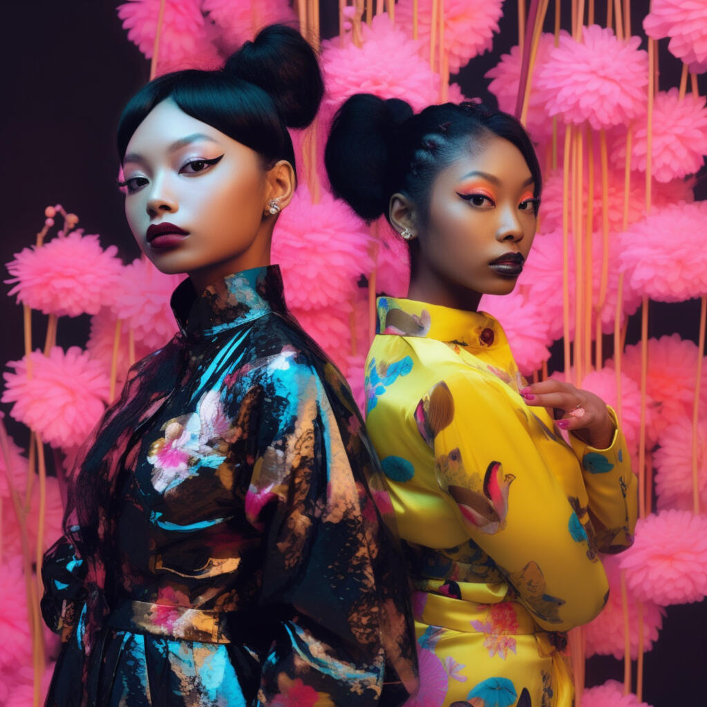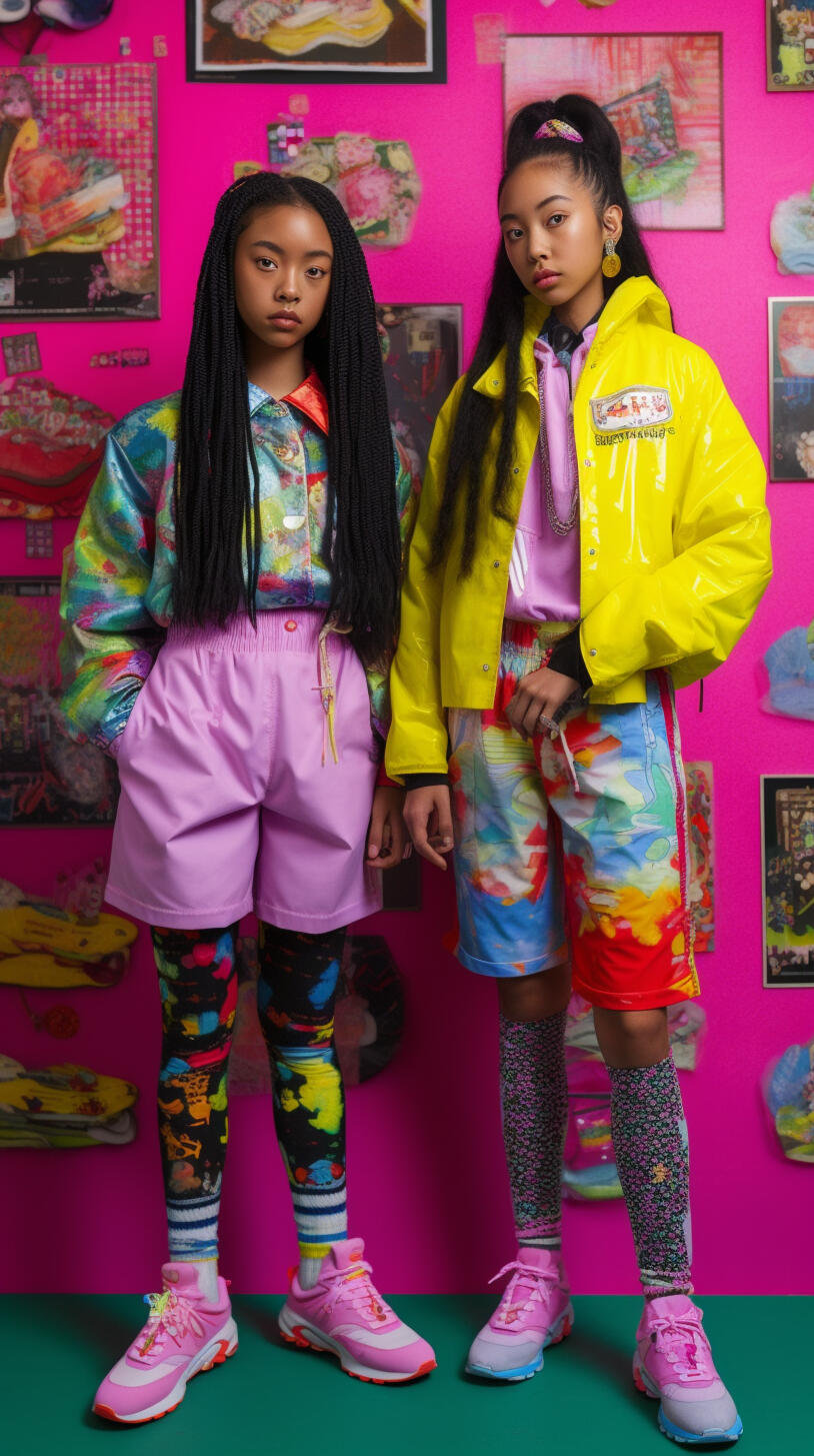 the nike x cyberpop series is a concept of how i would design and style a nike streetwear collection. the images are inspired by japanese pop culture and nineties british rave fashion with neon pastels and patterned fabrics reminiscent of the era. the pieces are designed to be comfortable and breathable. the accessories and makeup are natural and inspired by natures summer flowers.the collection features a range of sneakers, sportswear, and printsthat capture the energy and aesthetic of cyberpop culture. the use of bold colors and playful patterns creates a dynamic and eye-catching visual experience. the focus on comfort and breathability ensures that the collection is not only stylish but also practical for everyday wear.complementing the apparel are natural and fresh makeup looks, drawing inspiration from the vibrant hues of summer flowers. the emphasis is on enhancing natural beauty and embracing a fresh-faced glow. the overall aesthetic of the nike x cyberpop series embodies a fusion of streetwear fashion, cultural influences, and a touch of nature's beauty, creating a unique and captivating collection that resonates with the vibrant and expressive individuals of today.