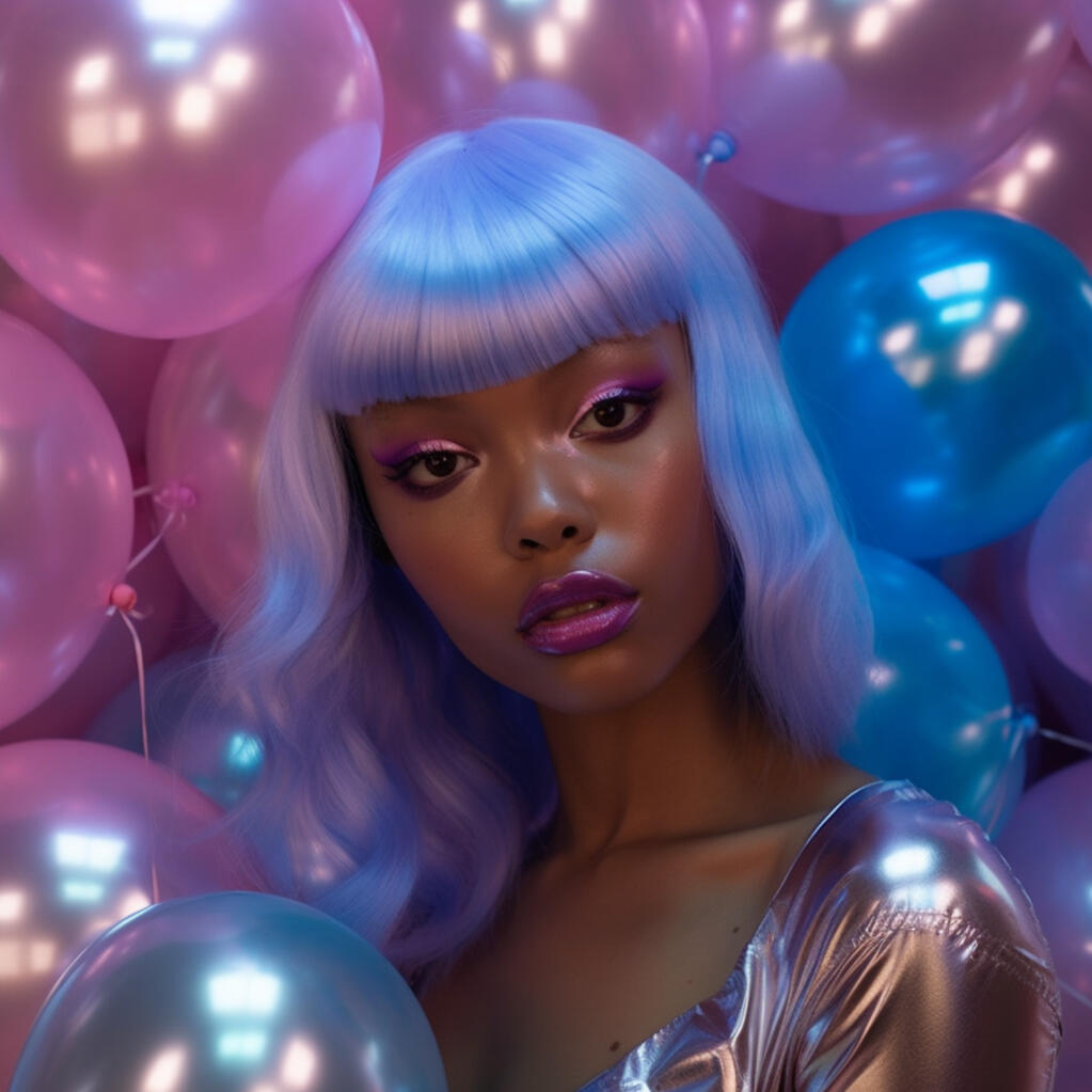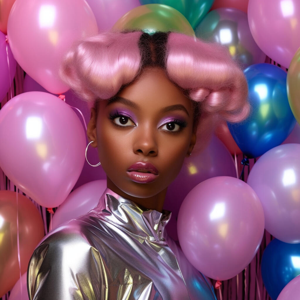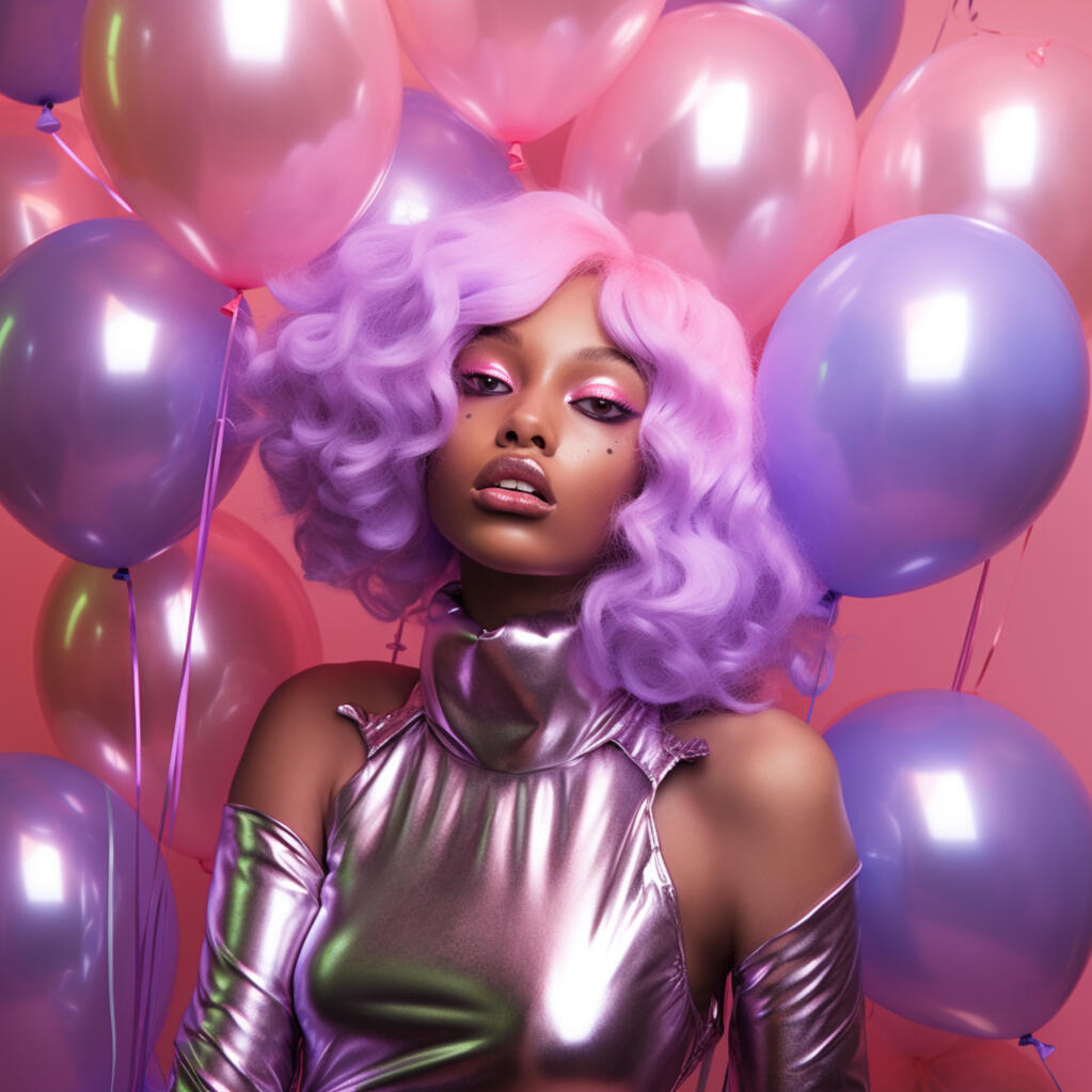 the metallica series is a makeup, hair, and clothing concept that draws inspiration from sheet metals and the unique aesthetic of the japanese fashion movement called party kei. This style combines the sparkle and shimmer of birthday parties and goody bags into a wearable statement. The result is a futuristic vision that transports you to a party in outer space.in this series, metallic elements take center stage, creating a captivating visual experience. the use of metallics as inspiration brings a sense of strength and industrial beauty to the designs. the incorporation of shimmer and balloons adds a playful and celebratory element, reminiscent of celebrations and birthday parties. the combination of these elements creates a unique and avant-garde style that captures the light and makes it wearable.the makeup, hair, and clothing designs capture the essence of light and reflectivity, bringing a touch of celestial beauty to the wearer. The metallica series offers a captivating allows individuals to embrace their inner sparkle and shine in a way that is both bold and wearable.