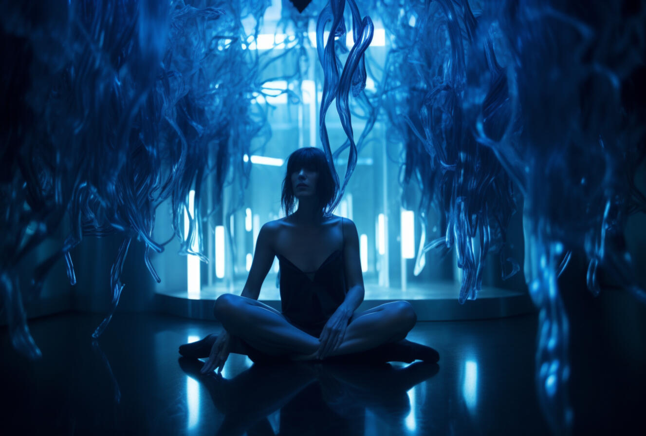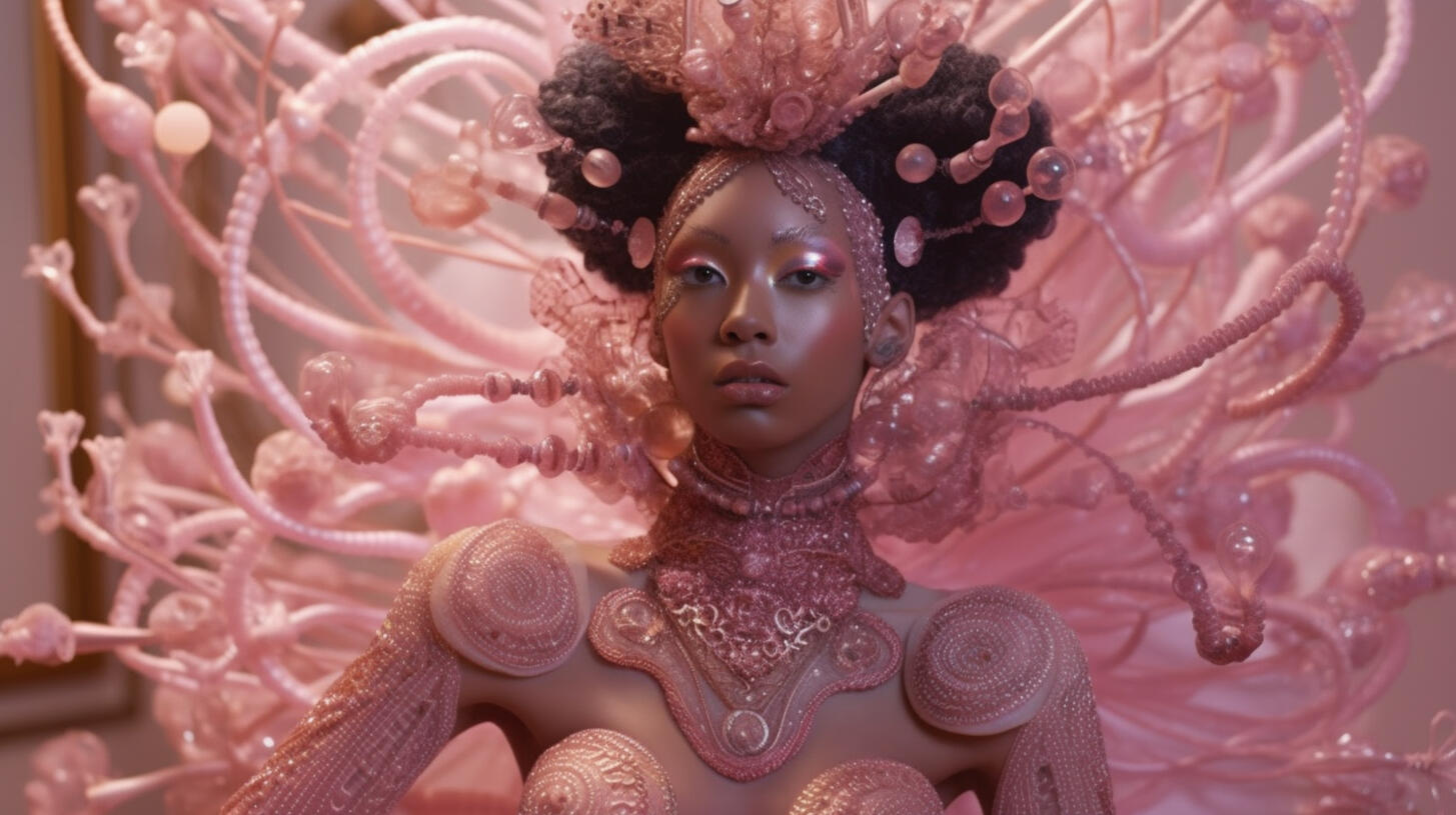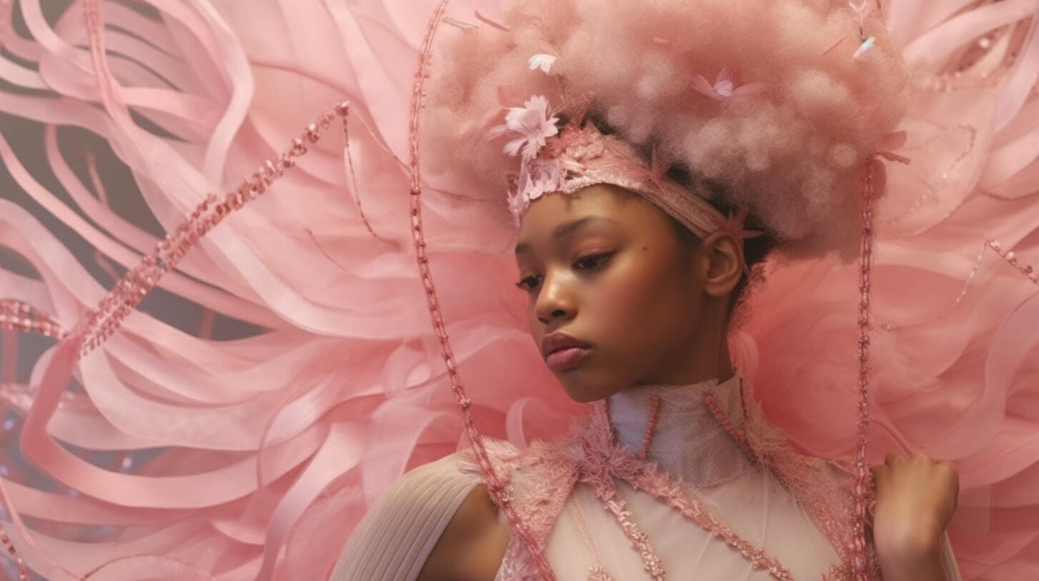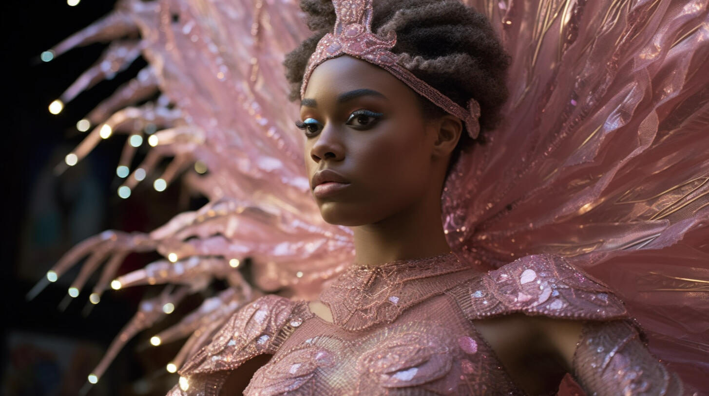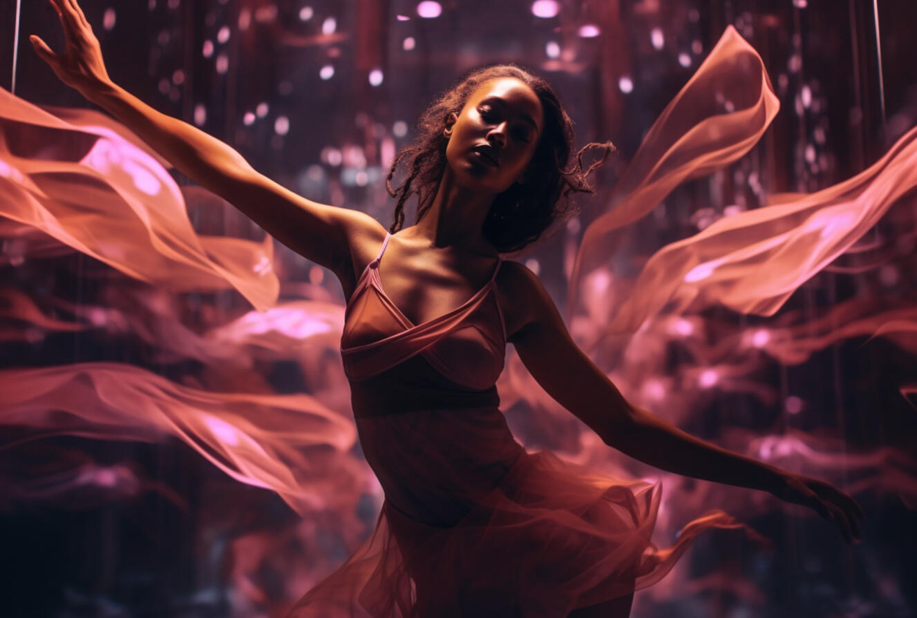 inspired by my late aunt, rosita balthazar who ran the belizean dance company, this series explores the concept of ai choreography and ballet costume. my work often deals with the relation between human and computer interaction and the beauty that lies within creative collaboration with technology. the lighting treatment in this series is meant to evoke the neon lights of subways, car indicator lights, and cats eyes on the road. these types of lights are usually liminal and unnoticeable in the background as they purely serve a purpose to help us see in the dark.the materials are inspired by the bio materials that designers are using now, which often carry the aesthetic values of plastics but bring us back to nature and resemble jellyfish or undersea creatures. by incorporating these materials, the series reflects the interplay between artificial and organic, highlighting the beauty and fragility of the natural world. the concept explores the transformative power of technology in the realm of dance and costume design, blurring the boundaries between the human body and the digital realm.
